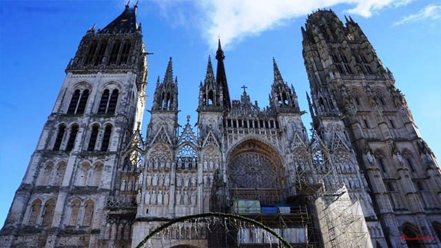 Our visit begins at Notre-Dame de Rouen Cathedral. This impressive Gothic cathedral is known for its detailed facade and dominating towers. It was one of the favorite motifs of painter Claude Monet, who immortalized it in a series of paintings.